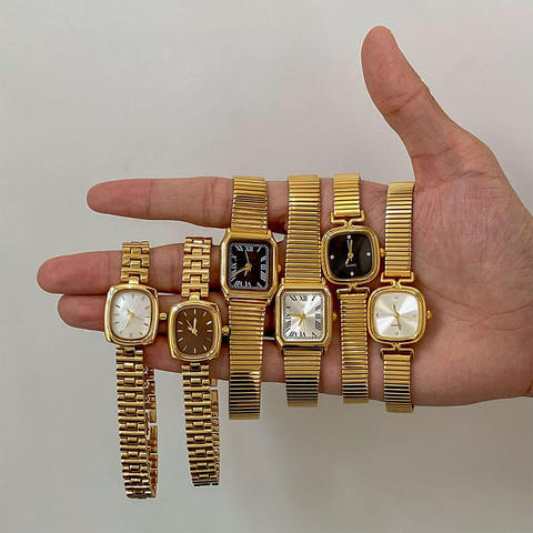 Lüks kadın paslanmaz çelik Quartz saat altın su geçirmez kare bilezik ODM kaynağı ile moda marka kol saati
